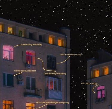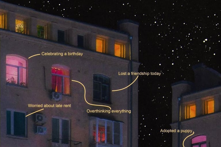 So let’s remind ourselves: the person next to you is a full, complicated, feeling being — just like you. They have a past, a present, and a future. They have people they love, and people they miss. They have fears and hopes they might never say out loud. They are trying, just like you.